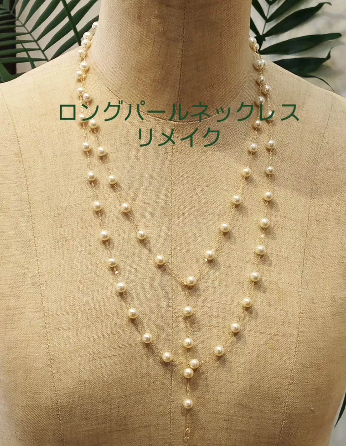 お客様のご希望で、ロングパールネックレスを2本のステーションネックレスにリメイク