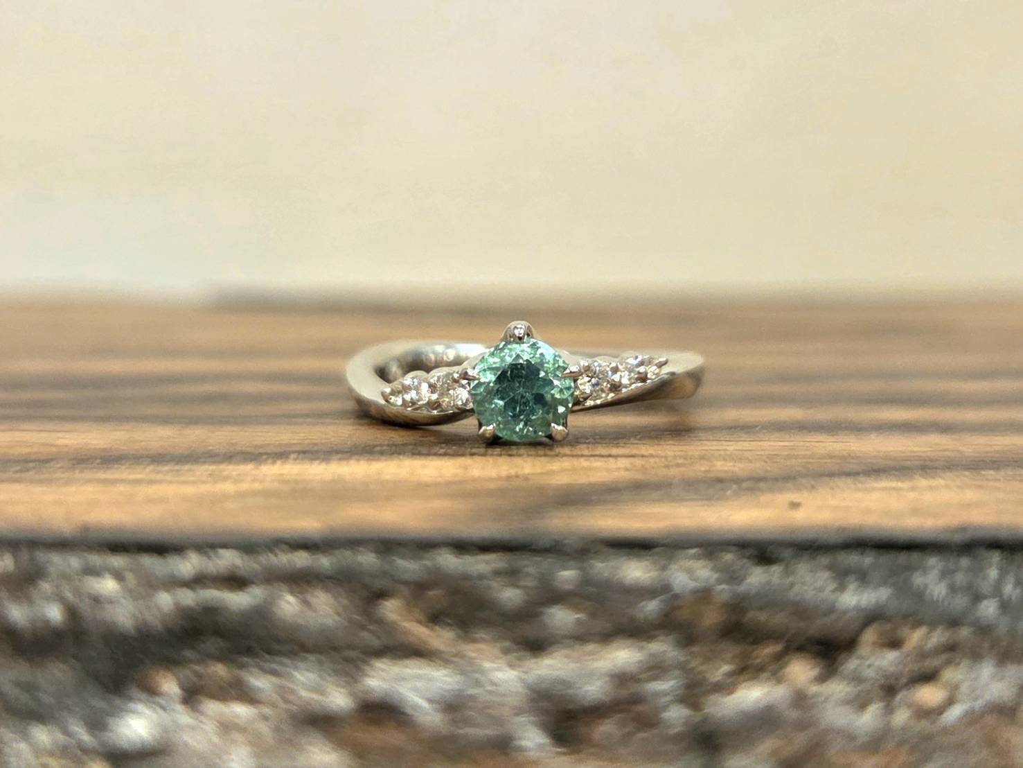 淡いグリーンが爽やかで、軽やかな水芭蕉のリングのデザインととてもマッチしています。